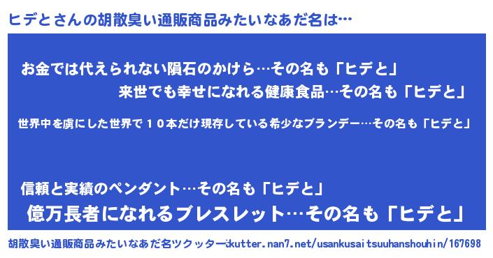 | 意味不明あだ名 | 『住所不定無職ヒデと(95歳)』 |