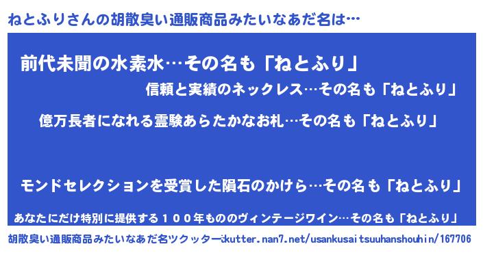 | ヘコむあだ名 | 『ねともー』『ねとふり(震え声)』 |