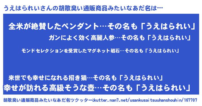 | 肩書あだ名 | 『うえはられい教授』『うえはられい少将』 |