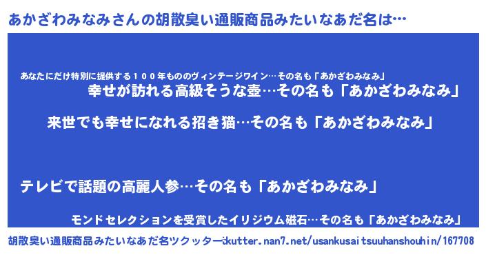 | 意味不明あだ名 | 『永久保存あかざわみなみ』 |