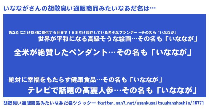 | ヘコむあだ名 | 『いなっぺ』『酢こんぶ』 |