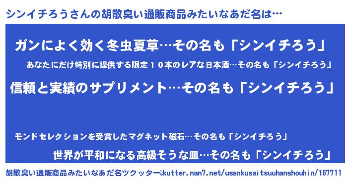 | 意味不明あだ名 | 『とにかく怪しいシンイチろう』 |