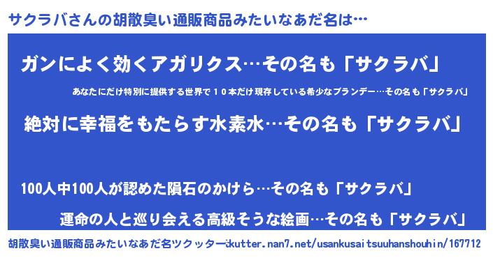 | ヘコむあだ名 | 『サクラバ(苦笑)』『豆乳』『サクを』 |