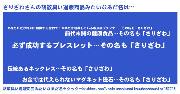 | 男性向けラノベタイトル風あだ名 | 『緋弾のサリザワ』『さりざわの憂鬱』 |