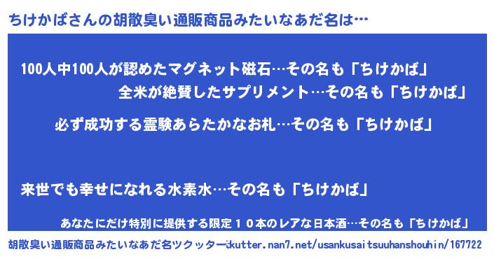 | 男性向けラノベタイトル風あだ名 | 『はたらくちけかばさま!』 |