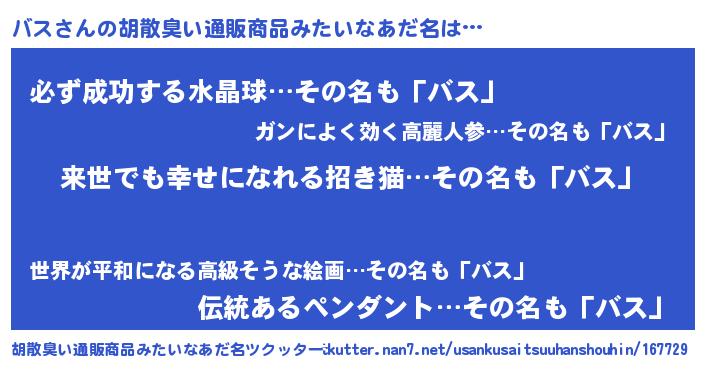 | ヘコむあだ名 | 『バス(笑)』『バスにゅー』『牛乳』 |