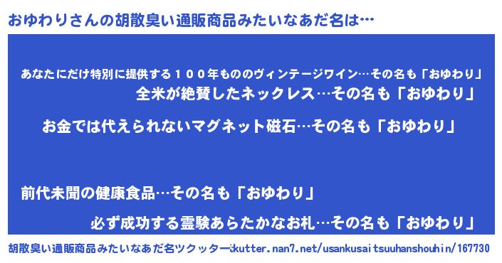 | 意味不明あだ名 | 『眠気覚ましガムおゆわり味』 |