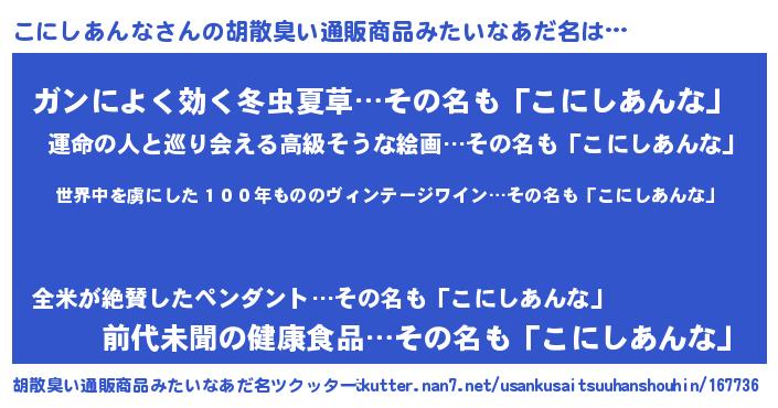 こにしあんなさんの胡散臭い通販商品みたいなあだ名をツクッター!