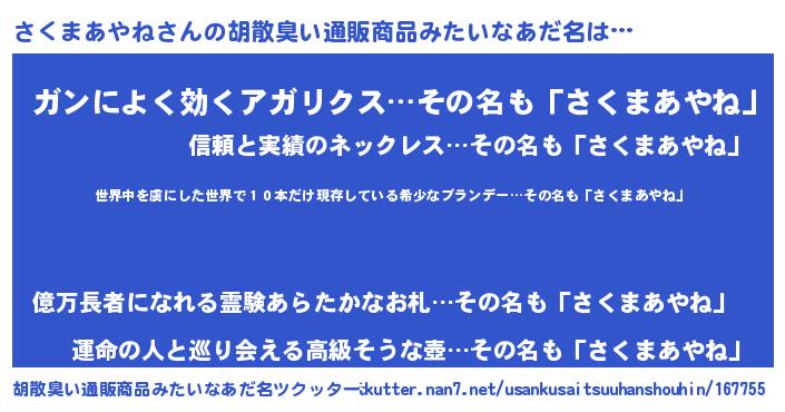 | 意味不明あだ名 | 『住所不定無職さくまあやね(98歳)』 |