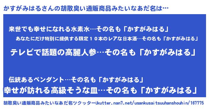 | ことわざ | かわいい子には旅をさせろ『かわいいかすがみはるには旅をさせろ』 |
