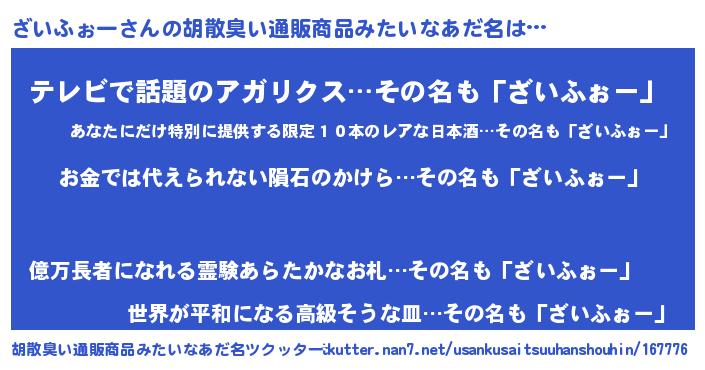 | ヘコむあだ名 | 『豆乳』『ざいにゅー』『ざいっちょ』 |