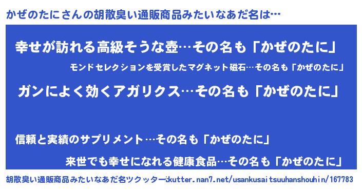 | 意味不明あだ名 | 『自称かぜのたに』『永久保存かぜのたに』 |