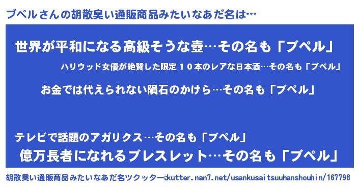 | ポケモン風あだ名 | 『ブックウザ』『ブペルダネ』 |
