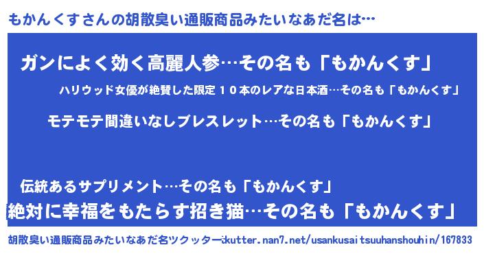 | 肩書あだ名 | 『もかんくすCEO』『もかんくす閣下』 |