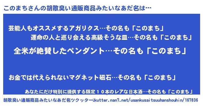 | 意味不明あだ名 | 『とにかく怪しいこのまち』 |