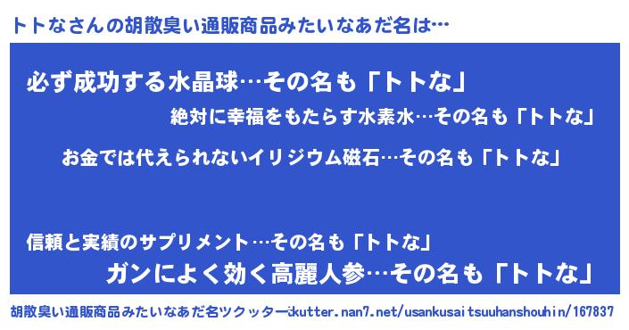 | ヘコむあだ名 | 『トトふぇ~』『トトな(笑)』 |