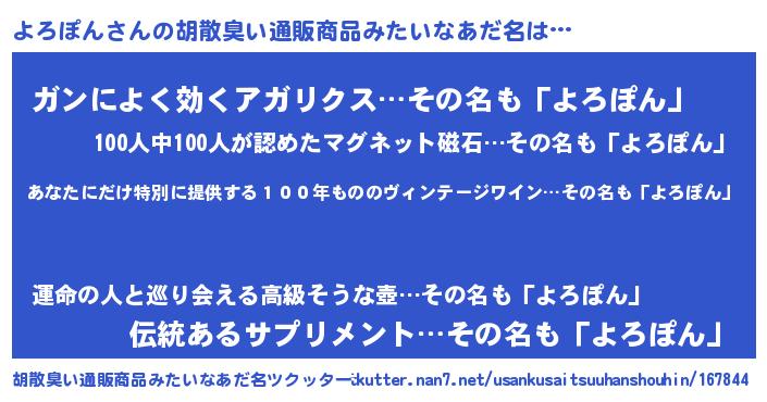 | ピコ太郎風あだ名 | 『ヨロ三郎』『ヨヨ太郎』『ピヨ史郎』 |