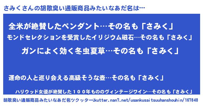 さみくさんの胡散臭い通販商品みたいなあだ名をツクッター!