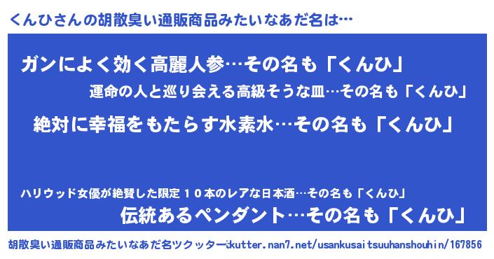 | 意味不明あだ名 | 『永久保存くんひ』『自称くんひ』 |