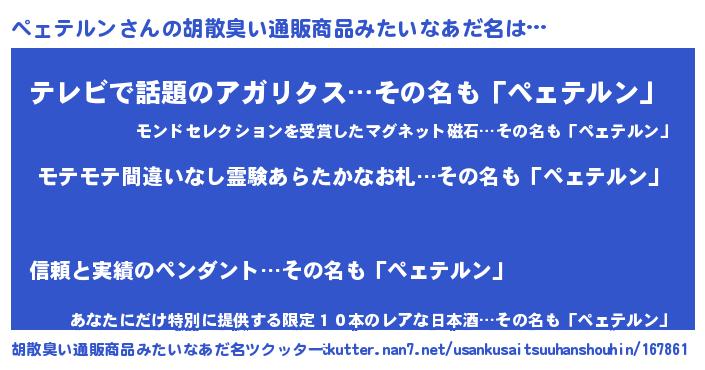 | 男性向けラノベタイトル風あだ名 | 『ペェテルンの憂鬱』 |