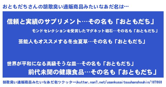 | 意味不明あだ名 | 『自称おともだち』『永久保存おともだち』 |