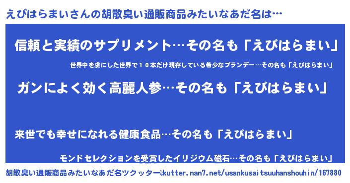 | ヒーロー風カッコイイあだ名 | 『ウルトラ戦士エビハラマイ』 |