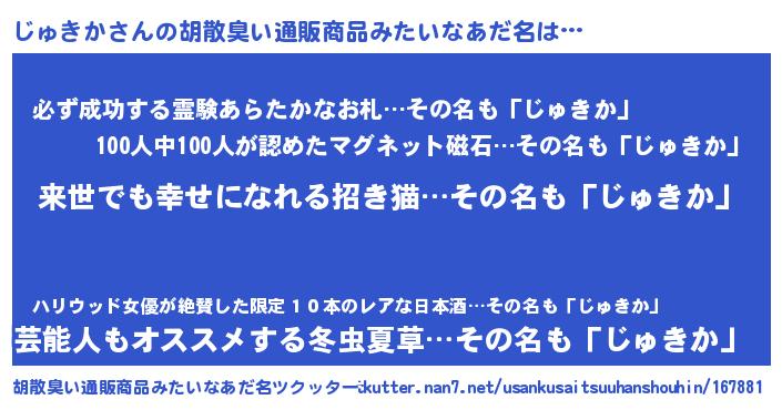| ヒーロー風カッコイイあだ名 | 『ネオジュキカ』『スーパージュキカ』 |