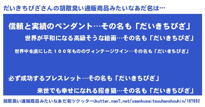 | ヘコむあだ名 | 『だいお』『だいきちぴざ(震え声)』 |