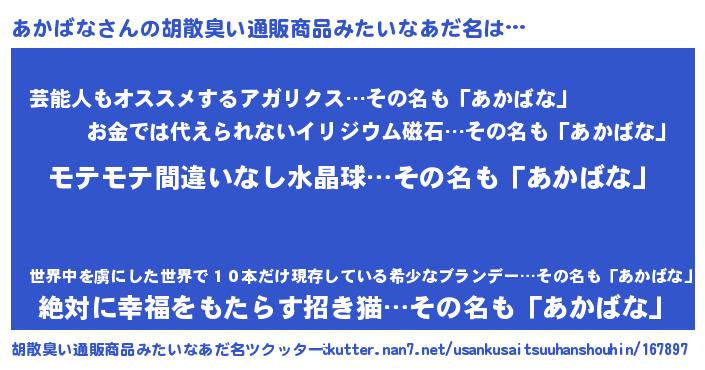 | ヘコむあだ名 | 『あかもー』『あかばな(遠い目)』 |