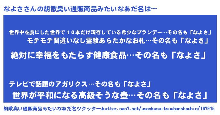 | 欧米人風あだ名 | 『ダルビッシュなよさ』『マイケルなよさ』 |