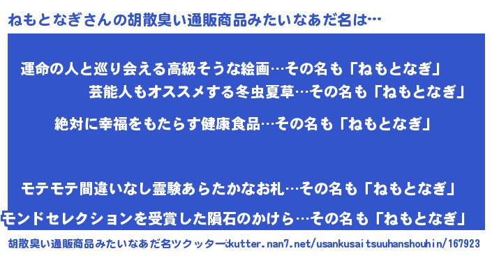 | 意味不明あだ名 | 『永久保存ねもとなぎ』『自称ねもとなぎ』 |