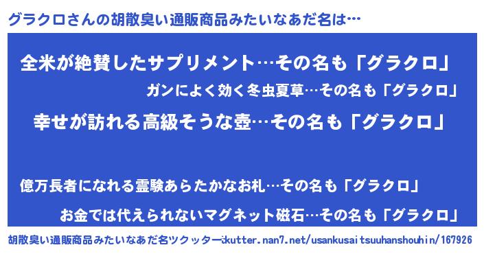 | ヒーロー風カッコイイあだ名 | 『ウルトラグラクロマン』『暗黒騎士グラ』 |