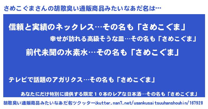 | 意味不明あだ名 | 『永久保存さめこぐま』 |