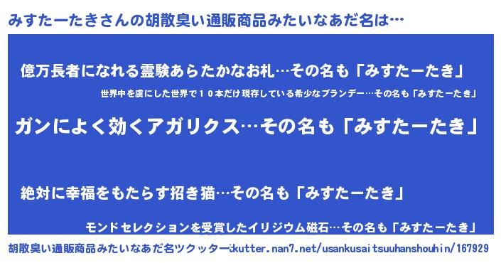 | 意味不明あだ名 | 『自称みすたーたき』 |