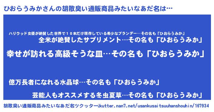| ファンタジー風あだ名 | 『エターナルヒオラウミカー』 |