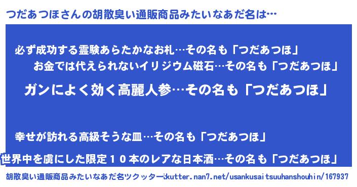 | 肩書あだ名 | 『つだあつほ中佐』『つだあつほ総統』 |