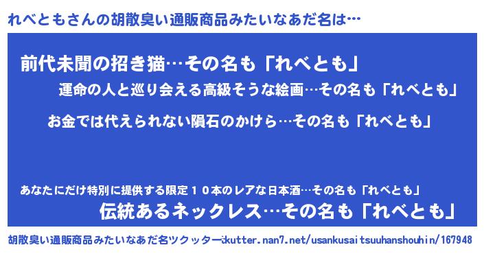 | ヒーロー風カッコイイあだ名 | 『慈愛の使者れべとも』『ネオレベトモ』 |