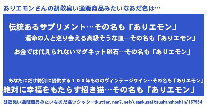 | 肩書あだ名 | 『ありエモン助教授』『ありエモン大将』 |