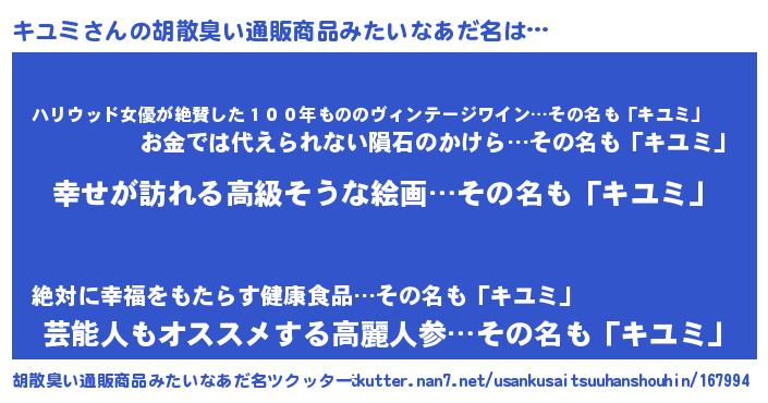 | ヘコむあだ名 | 『つくし』『キユミ(爆)』『キユを』 |
