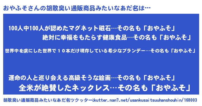 おやふそさんの胡散臭い通販商品みたいなあだ名をツクッター!