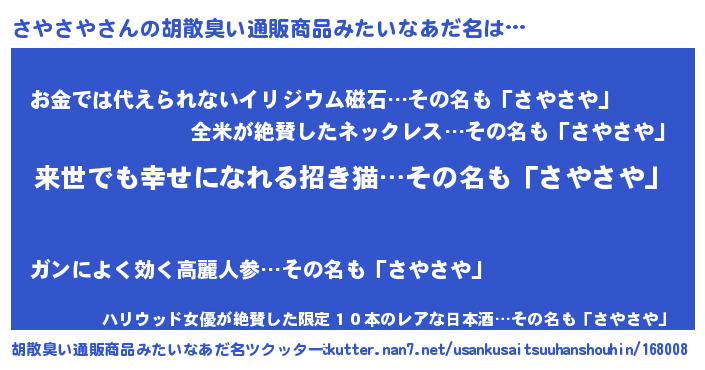 | 意味不明あだ名 | 『永久保存さやさや』『自称さやさや』 |