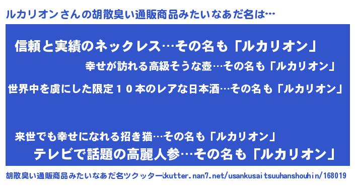 | 男性向けラノベタイトル風あだ名 | 『この素晴らしい世界にルカリオンを!』 |