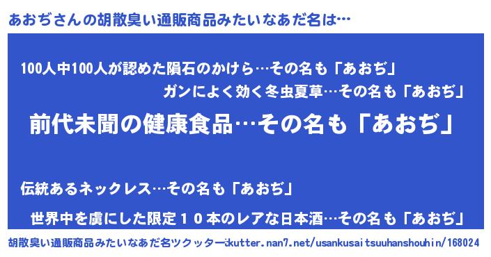 | ヒーロー風カッコイイあだ名 | 『ネオアオヂ』『友情の使者あおぢ』 |