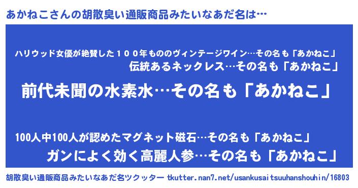 | 意味不明あだ名 | 『永久保存あかねこ』『自称あかねこ』 |