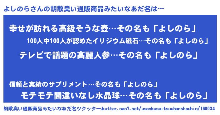 | 意味不明あだ名 | 『自称よしのら』『よしのらフォーエバー』 |