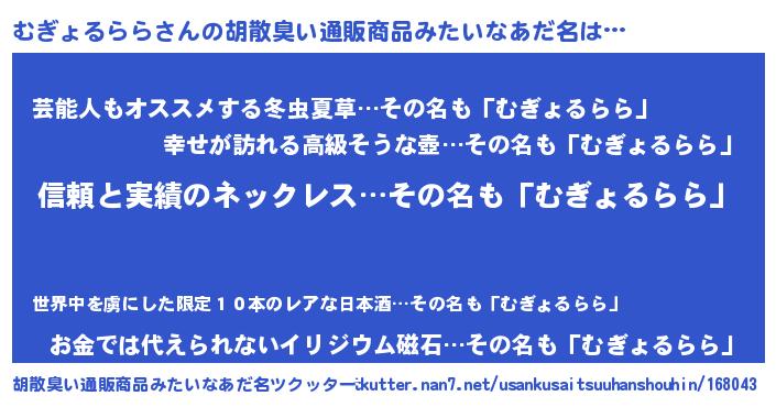 | 伝説のあだ名 | 『孤高の僧侶むぎょるらら』 |
