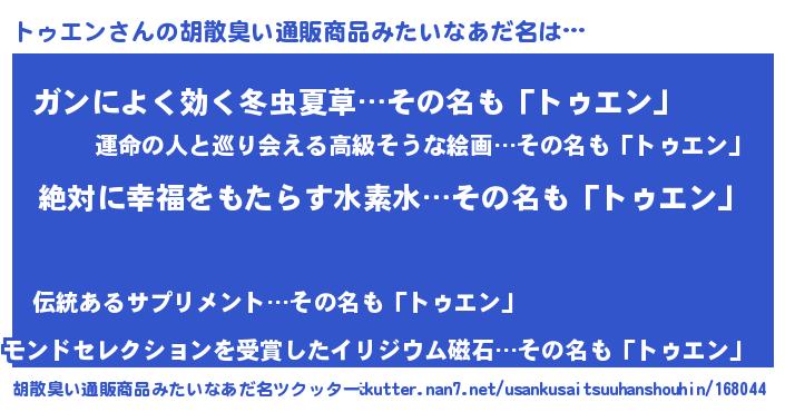 | ヒーロー風カッコイイあだ名 | 『ネオトゥエン』『ウルトラ戦士トゥエン』 |
