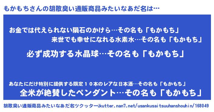 | 男性向けラノベタイトル風あだ名 | 『もかもちの憂鬱』 |