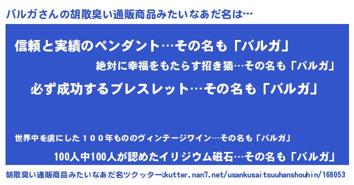 | 男性向けラノベタイトル風あだ名 | 『バルガの憂鬱』『緋弾のバルガ』 |