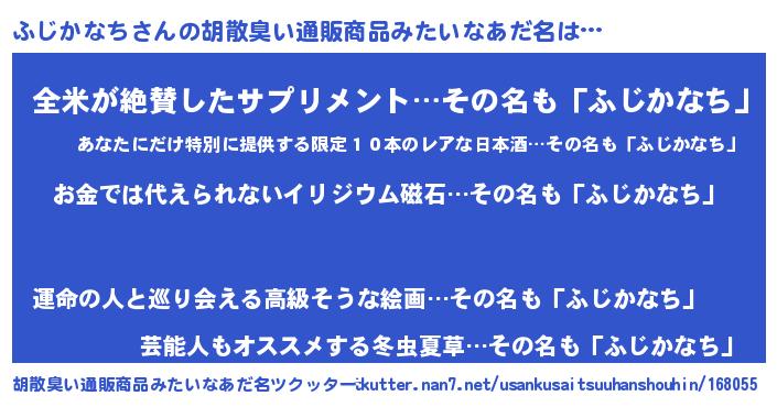 | 意味不明あだ名 | 『眠気覚ましガムふじかなち味』 |